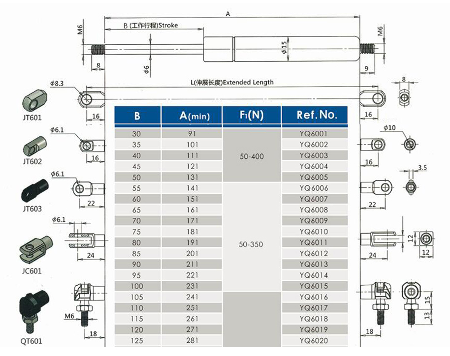 注:由于氣彈簧是非標準的,以上僅為型號的一部分。我們可以根據(jù)客戶的要求定制。