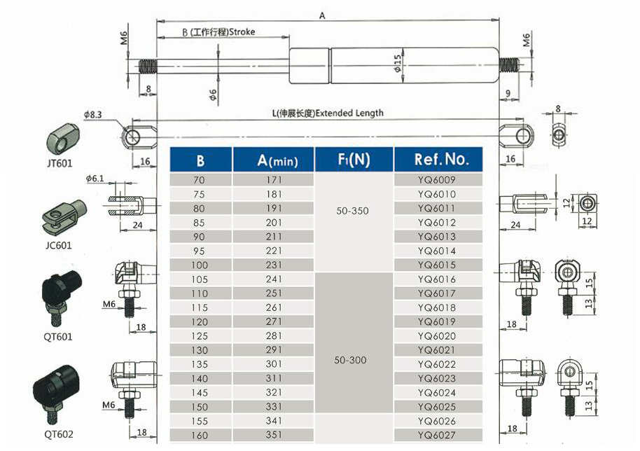 注:由于氣彈簧是非標(biāo)準(zhǔn)的,以上僅為型號(hào)的一部分。我們可以根據(jù)客戶(hù)的要求定制。