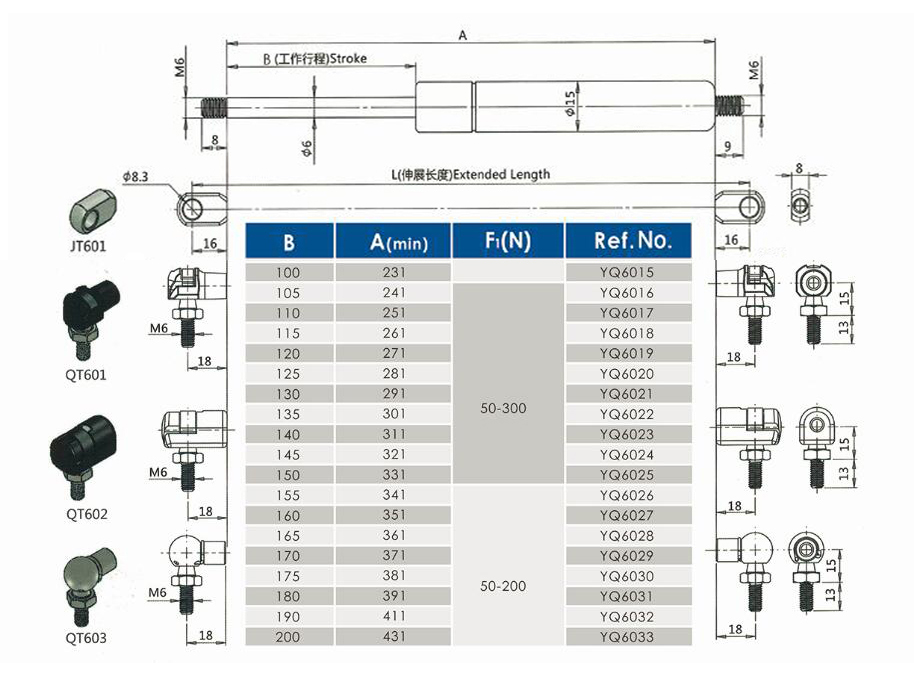 注:由于氣彈簧是非標(biāo)準(zhǔn)的,以上僅為型號的一部分。我們可以根據(jù)客戶的要求定制。