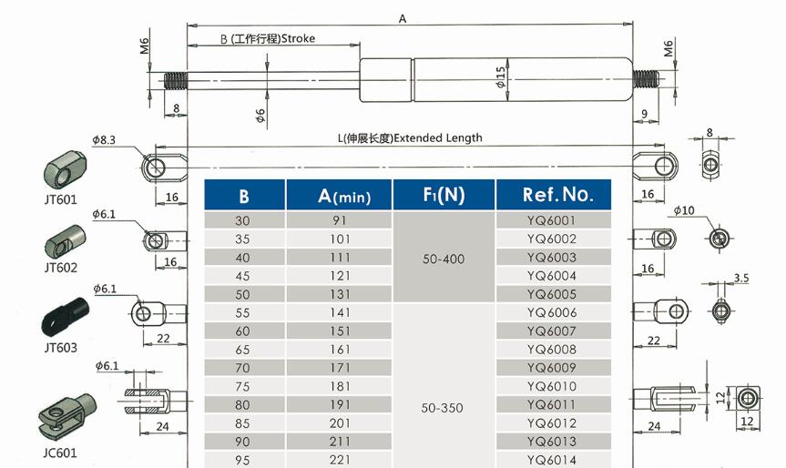 注:由于氣彈簧是非標(biāo)準(zhǔn)的,以上僅為型號的一部分。我們可以根據(jù)客戶的要求定制。