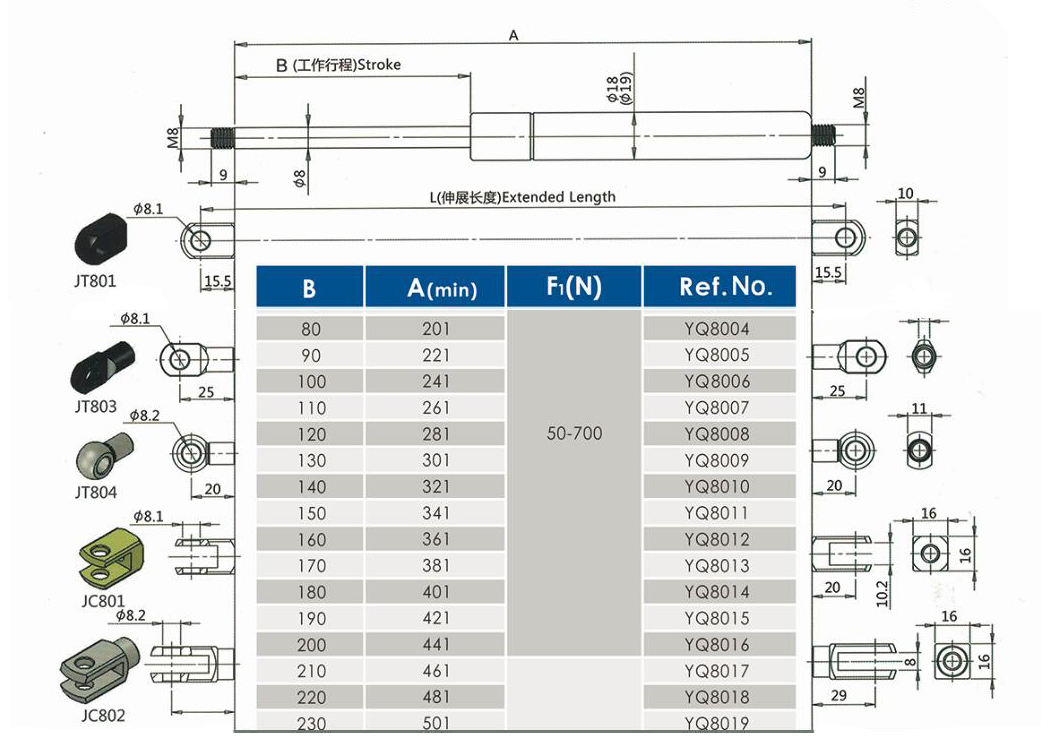 注:由于氣彈簧是非標準的,以上僅為型號的一部分。我們可以根據(jù)客戶的要求定制。