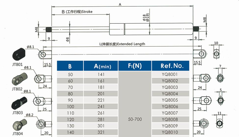 汽車氣彈簧-舉升氣彈簧YQ8/18-2